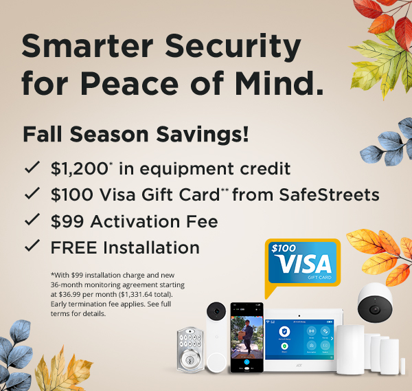 **The Visa¨ Reward Card is issued by MB Financial Bank, N.A., Member FDIC, pursuant to a license from Visa U.S.A. Inc. The Visa¨ Reward Card is provided by SafeStreets USA and is not sponsored by ADT Security Systems. Limit one Visa¨ Reward Card and system per household. To be eligible for the Visa¨ Reward Card you must be a new SafeStreets USA customer, have signed a 36 month monitoring agreement and complied with the redemption instruction.